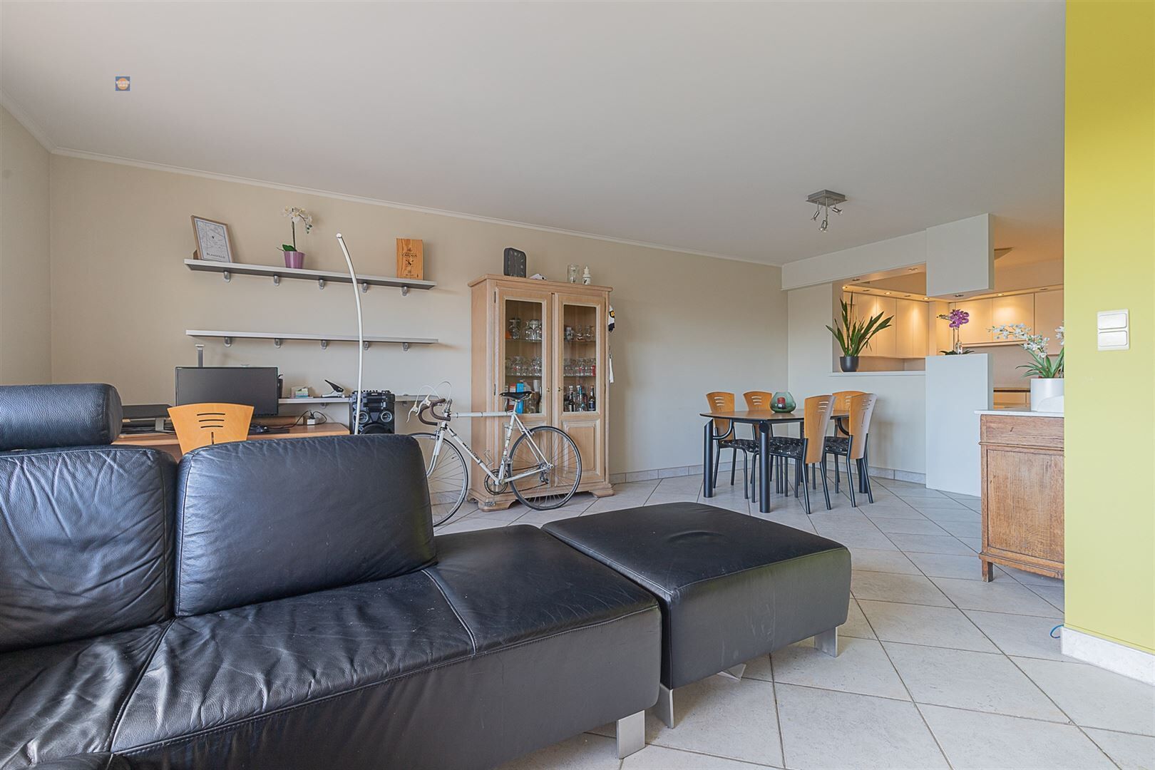Bij het betreden van het appartement kom je terecht in een ruime inkomhal die toegang biedt tot de lichtrijke woonkamer met open keuken. Dankzij de grote raampartijen baadt de leefruimte in natuurlijk licht en geniet je van een mooi zicht op het water. Via het raam bereik je het ruime terras aan de voorzijde, de ideale plek om te ontspannen en te genieten van de omgeving.